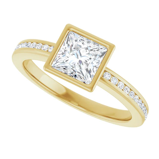 1+ CT Assented Shank Bezel Set Lab Created Princess Cut Diamond Engagement Ring